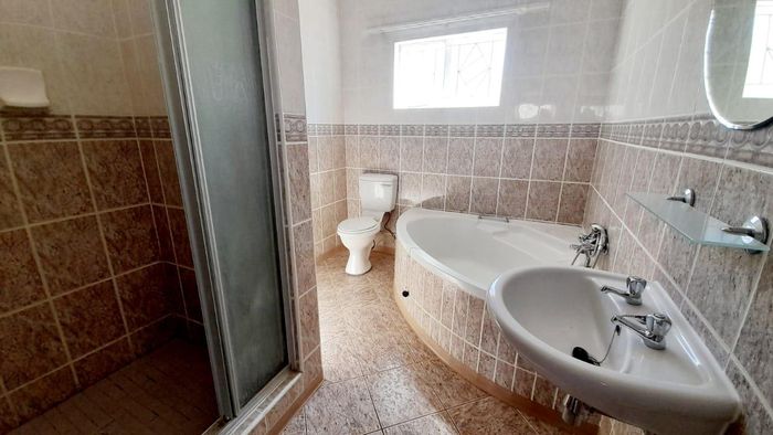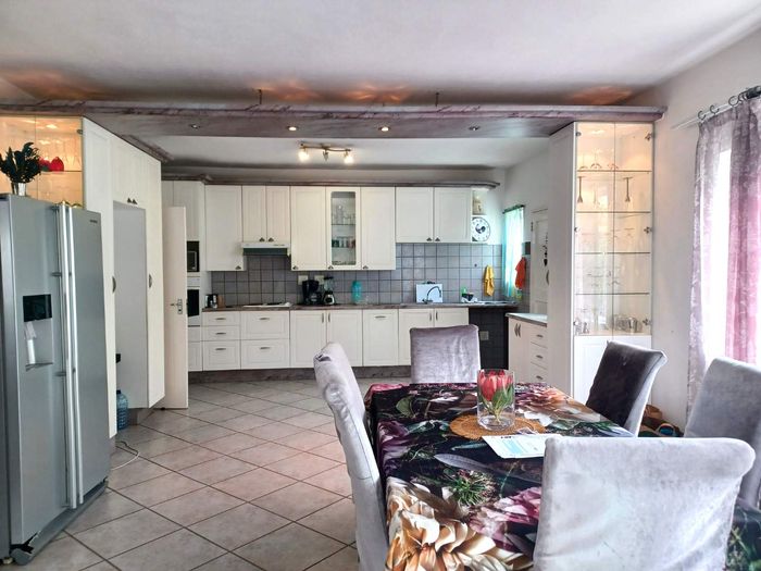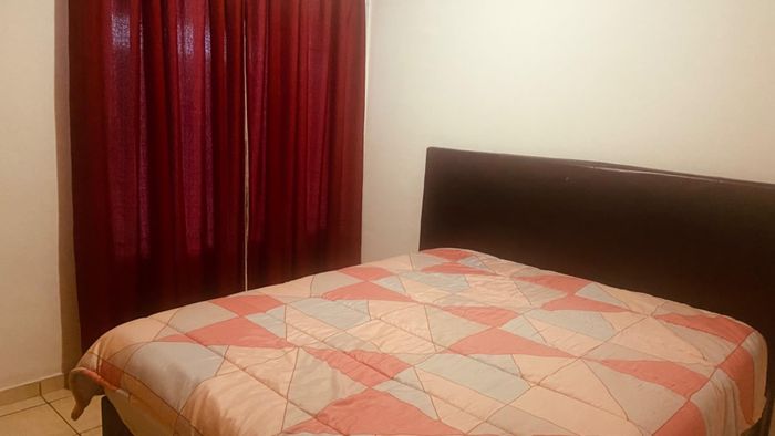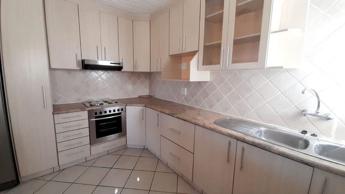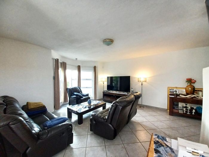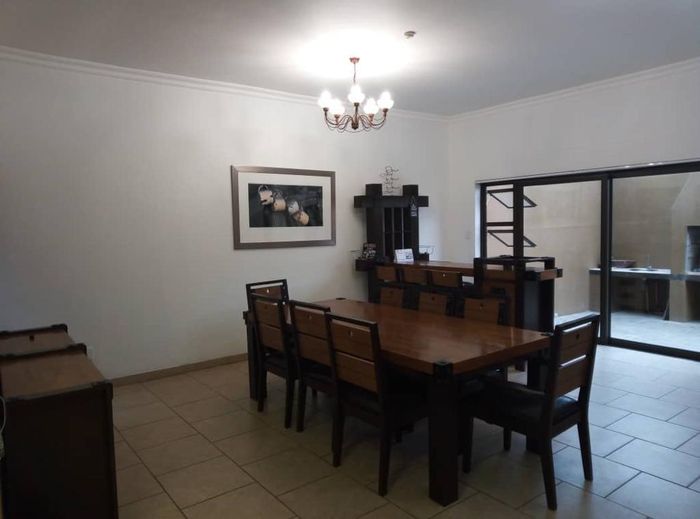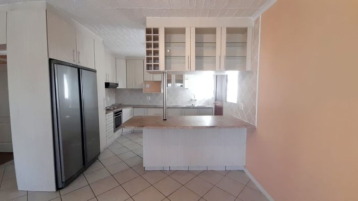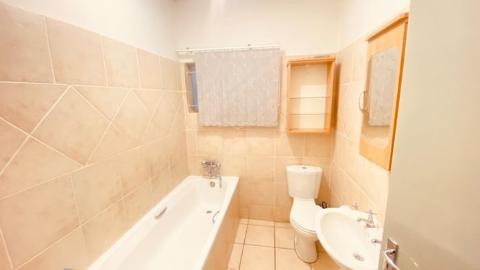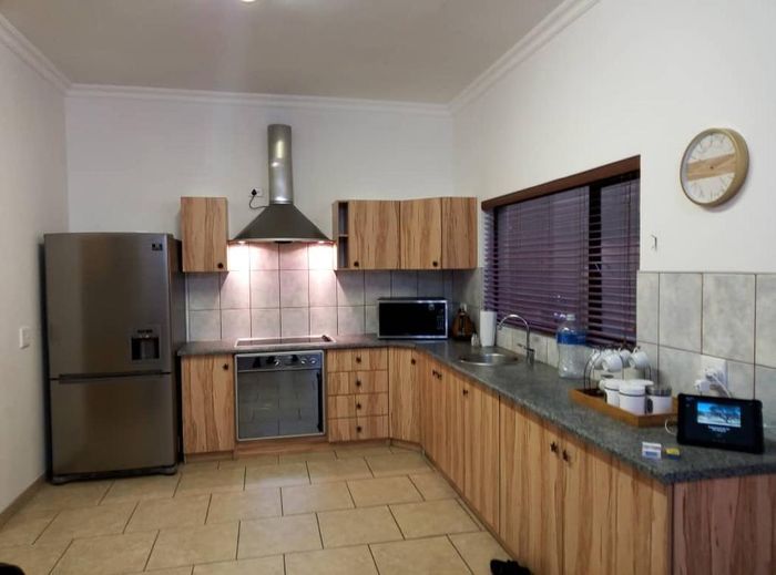 3-bed, 2-bath with kitchen and open living leading to thatched lapa and BBQ. Large garden, courtyard, 1 garage, secure. No pets.