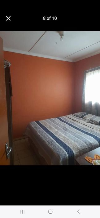 Convenient living near the shopping centre in a secure complex with CCTV, alarm and electric fence. Open-plan lounge, fitted kitchen and spacious courtyard — 2 beds, 1 bath, open parking.