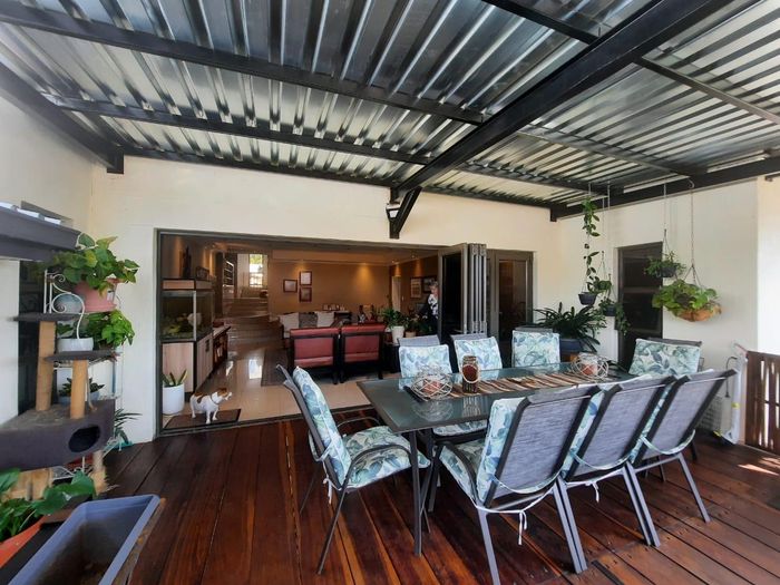This property has 3 bedrooms, 2.5 bathrooms, a kitchen with a scullery, open plan living area, BBQ on the veranda, small pet-friendly garden, and 2 garages with a laundry area.