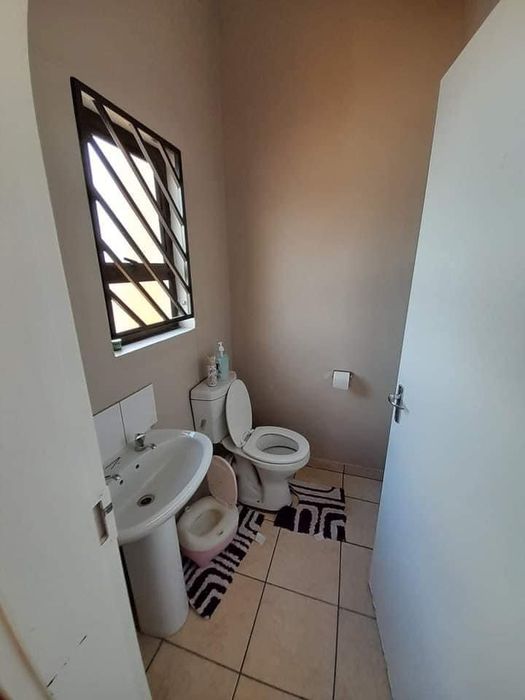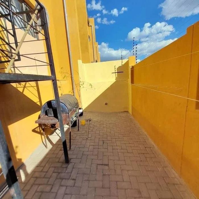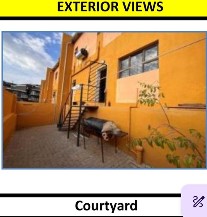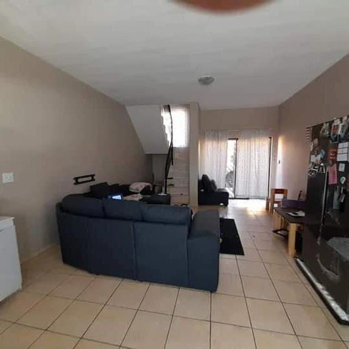 Convenient living near the shopping centre in a secure complex with CCTV, alarm and electric fence. Open-plan lounge, fitted kitchen and spacious courtyard — 2 beds, 1 bath, open parking.