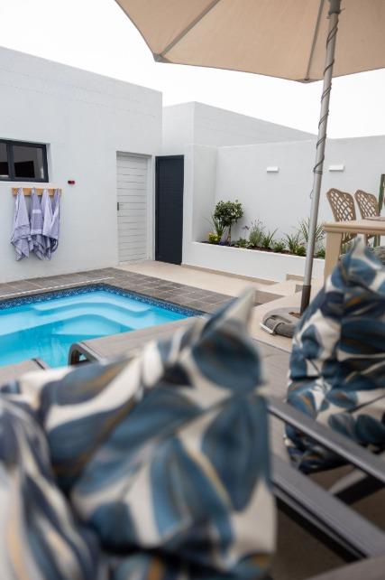 This Exceptional Newly Built, Three-level Luxury Home, located just 15 km outside of Swakopmund comes with breathtaking panoramic views of the ocean, spectacular sunsets and shimmering ship lights at night, enjoyed from the patio designed for peaceful relaxation and outdoor living.