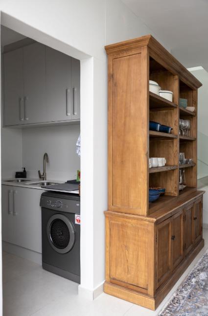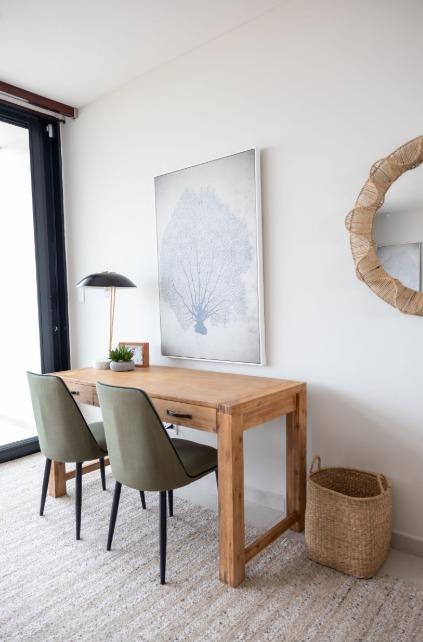 On the ground level, the fourth en-suite bedroom has a little kitchenette, living area, a generous storage room beneath the staircase, a floor to ceiling window and sliding door with safety shutter for sea views. This space is ideal for guest or extended stays.