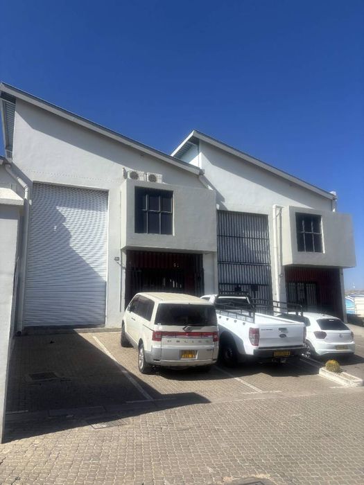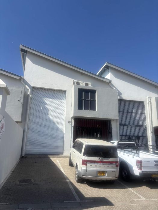 Prime Lafrenz Industrial Park, Windhoek location offering secure, gated warehouse with first-floor air‑conditioned office and allocated parking. Ideal for logistics or light manufacturing — 161 m², three bathrooms.