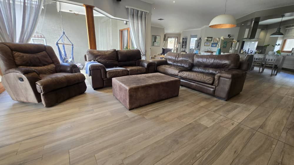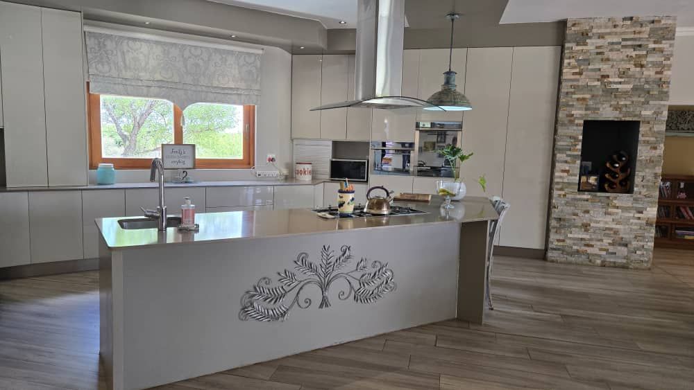 Pool, with a well Established Garden and beautiful views. With a separate entrance, a playroom/study/work space, that can be changed to a flat. 3 Garages. Central cooling system, solar geysers and alarm system are some of the extras
