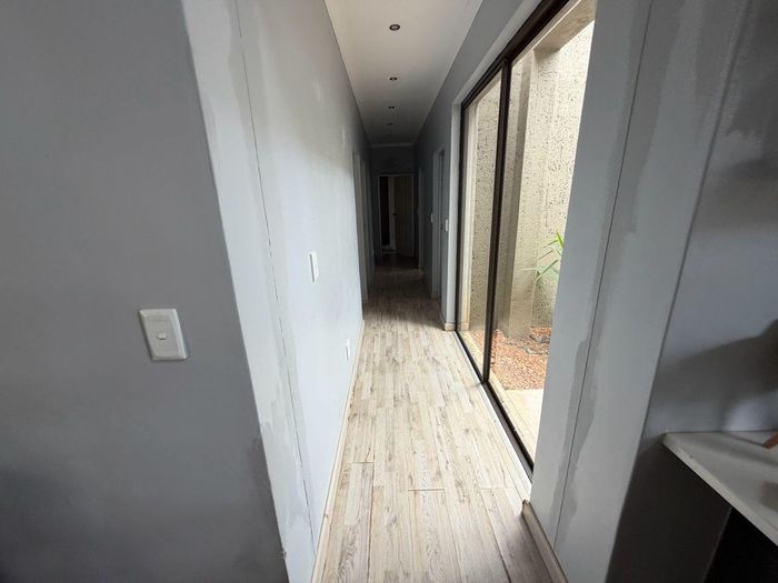 Sunlit Khomasdal townhouse with easy entertaining in an open lounge/kitchen, generous parking and mature fruit trees for alfresco living — two bedrooms, one bathroom.