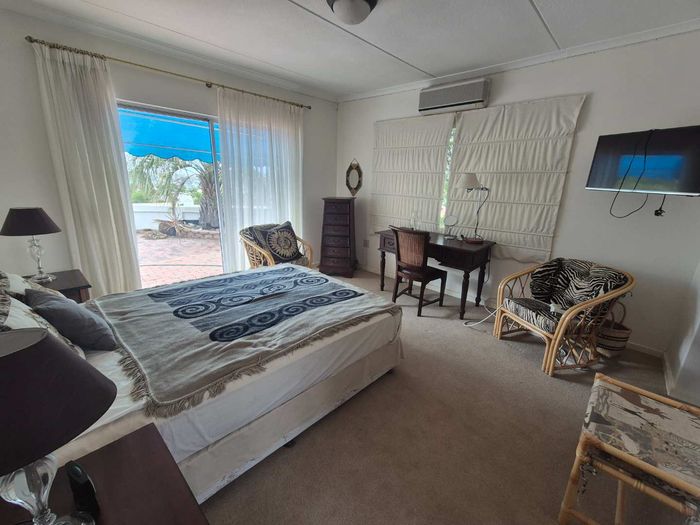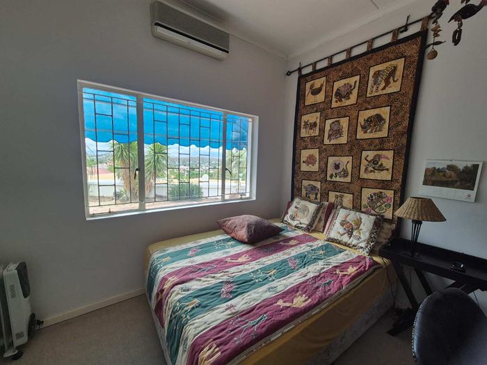 Secure, embassy-adjacent lifestyle in Klein Windhoek with single-level living and private flat — generous water tanks and solar geysers. Four bedrooms, three bathrooms, four garages.