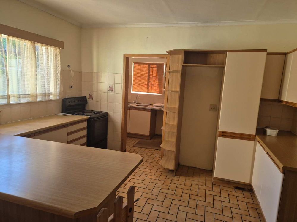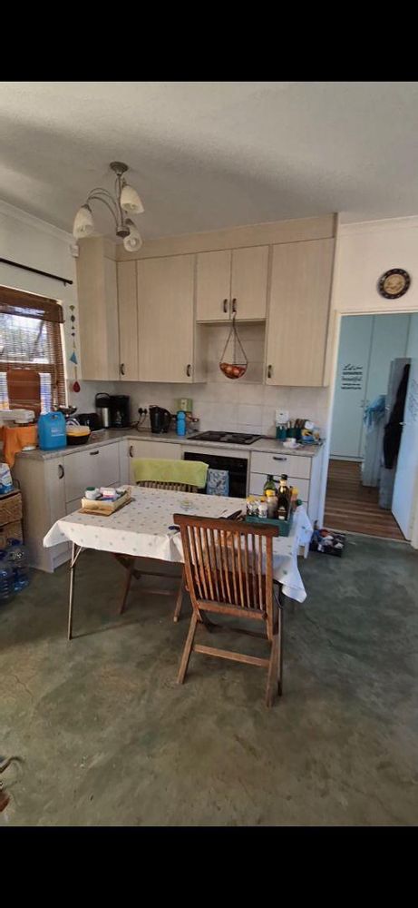 The main house has a open plan living area which connects to the living room, dining room and entertainment area. All on one level with two bathrooms of which the main is en-suite. Kitchen comes with a scullery. Next to the living area is a store room or library connecting to a office. The office has its own entrance. Outside features a pool, solar geysers, BBQ area, outside toilet, sauna, guest bedroom with own bathroom, outdoor shower and water tank to collect rain water.