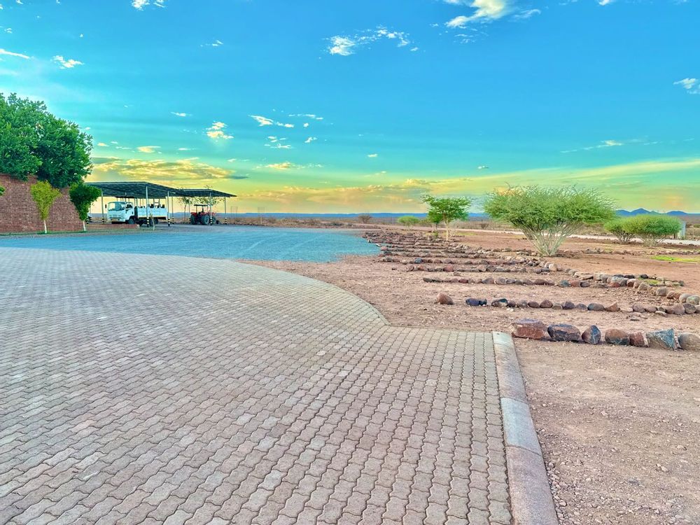 Landscapes on the farm consist mainly of level grass/bush plains, small hill areas, dry riverbeds and some small natural group dams. The farm has normal grass/bush distribution. The soil consists of a mixture of granite stone and some coarse sand.