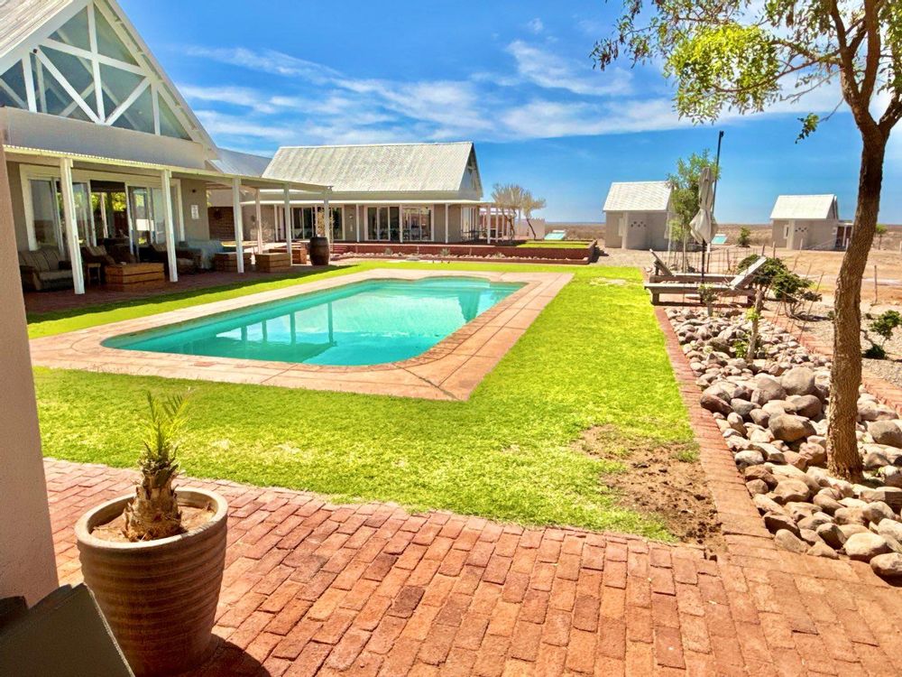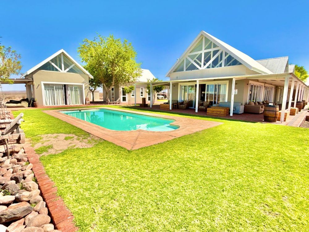 consist of 5 bedrooms, communal ablutions, 3 owner bedrooms with en-suite bathrooms, kitchen area, office, storerooms, worker’s accommodation, old dwelling, large veranda/dining areas, workshop, carports and abattoir areas.