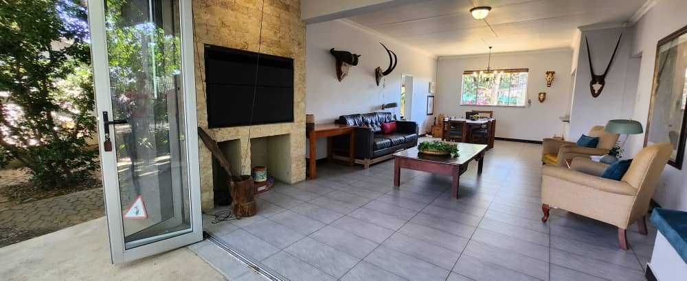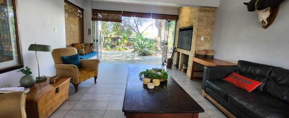 3 bedrooms, 2 bathrooms, kitchen with scullery and study. Indoor BBQ with open plan living, opening up on a lush garden with lots of birdlife. One bedroom flat, with tandem garage and shaded parking.