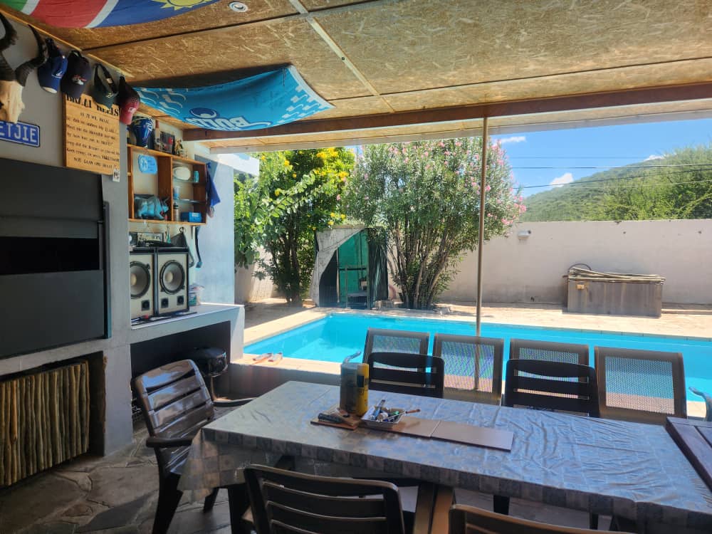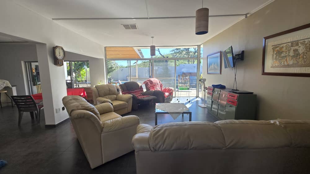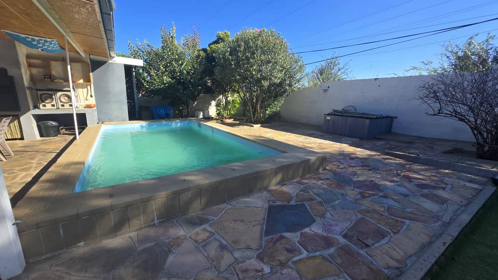 5 bedrooms, 4 bathrooms, kitchen with dining room, living room and laundry. Pool with entertainment area. 3 Garages and ample parking.
